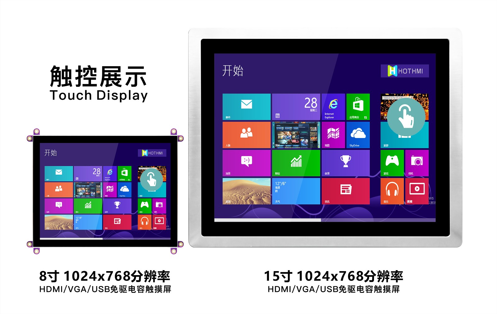8 inch TFT HI DISPLAY & 15 inch TFT HI DISPLAY 1024*768 resolution ,With USB Cap Touch