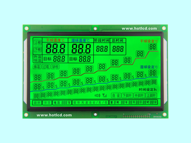 Flue-cured tobacco leaf machine dedicated liquid crystal display module/HTM68228 Segment LCM 190x123x11 168.61x91.5 Roast tobacco leaf machine 6H GREEN 14PIN SPI Meet the national standard of flue-curing machine -20~70℃ 5.0V HT1621