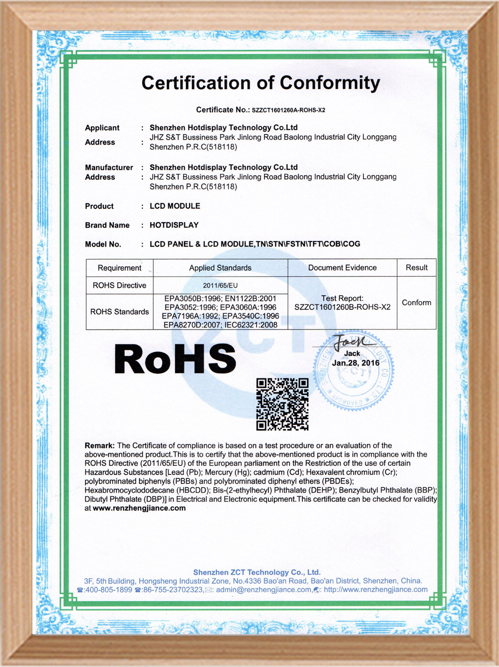 ROHS 認證證書
