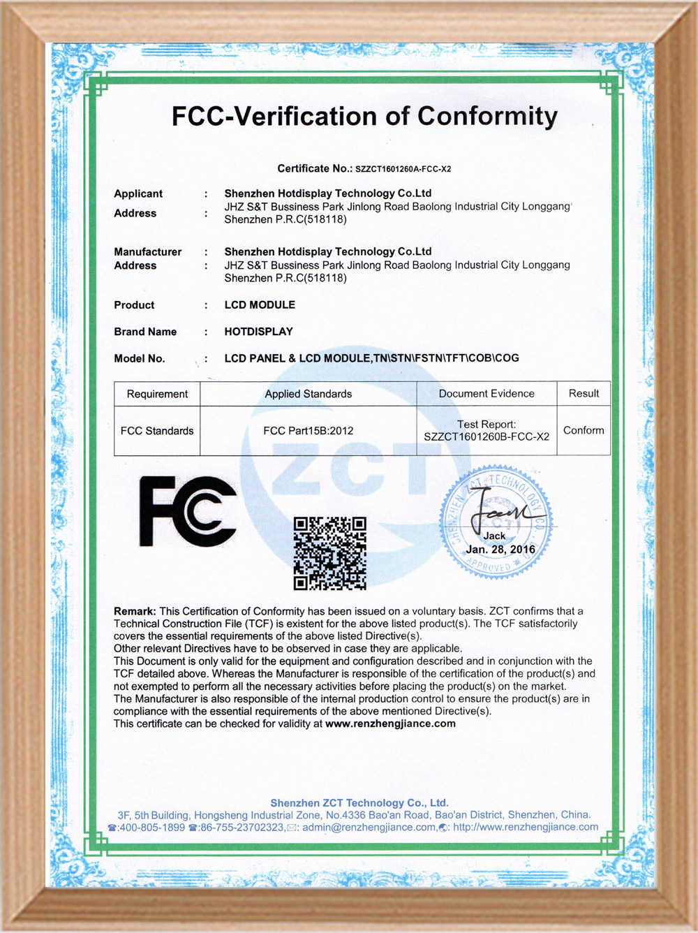 FCC認證證書